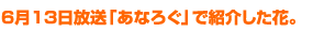 トップ > 地産地消キャンペーン > 「あなろぐ」6月の放送で紹介したお花
