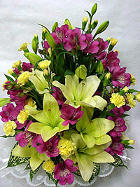 石川園芸(盛岡市) / LAユリ「クーリエ」 JA新いわて(雫石町) / スプレーカーネーション「プリン」 JAいわて中央(盛岡市都南地区) / アルストロメリア「ストレータス」 クーリエは、オリエンタルユリとスカシユリをかけ合わせたLAユリと言われるユリです。代表的な色は、黄色やオレンジ、ピンクですが、クーリエは、ややグリーンの入った白色。何とも言われぬ上品な色です。 プリンは、その名の通り甘いスィーツを思わせるカーネーション。淡い黄色の花弁の先にピンクのラインが愛らしいカーネーションです。 ストレータスは、これからの時期、取り扱いが多くなってくるアルストロメリアの中で、最近登場したパープル色の品種です。とても映える色で存在感があり、花の中央部の白色が良いアクセントになっています。 ※放送終了後、視聴者プレゼントとして3名様に特製アレンジメントをお贈りしました。 生花協力 盛岡生花地方卸売市場 |