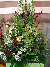 JA新いわて(雫石町) / 梅もどき 梅もどきは、昨年10月24日にも紹介しました。この季節限定の花材ですが、赤い実が沢山ついた秋の実りを感じさせる枝物です。ここまでビッシリと実がついているのは、実に素晴らしいです。 ストックは、冬の時期に出回る花材で、市場にこの花が出始めますと、いよいよ冬が近づいていると感じます。英語名で、茎や幹を意味し、しっかりとした茎に由来するとのこと。枝が何本かに分かれるスプレー咲き、一本の幹に花をつけるスタンダード咲きに分類されます。色も様々で白、黄色、ピンク、紫、ブルー系など濃淡の違いもありますし、香りも印象深い花です。寒さに強いので、是非みなさんも飾ってみて下さい。 ※放送終了後、盛岡市アイスアリーナで展示して頂きました。 生花協力 盛岡生花地方卸売市場 |